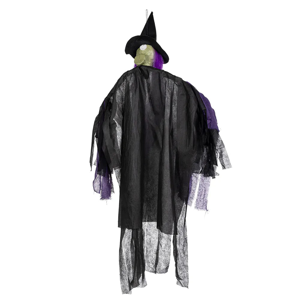 Sæt et uhyggeligt og ikonisk præg på din halloween-dekoration med denne 1,46 meter lange halloween-dukke Purple Witch. Perfekt til en skræmmende atmosfære under halloween eller i et hjemsøgt hus.