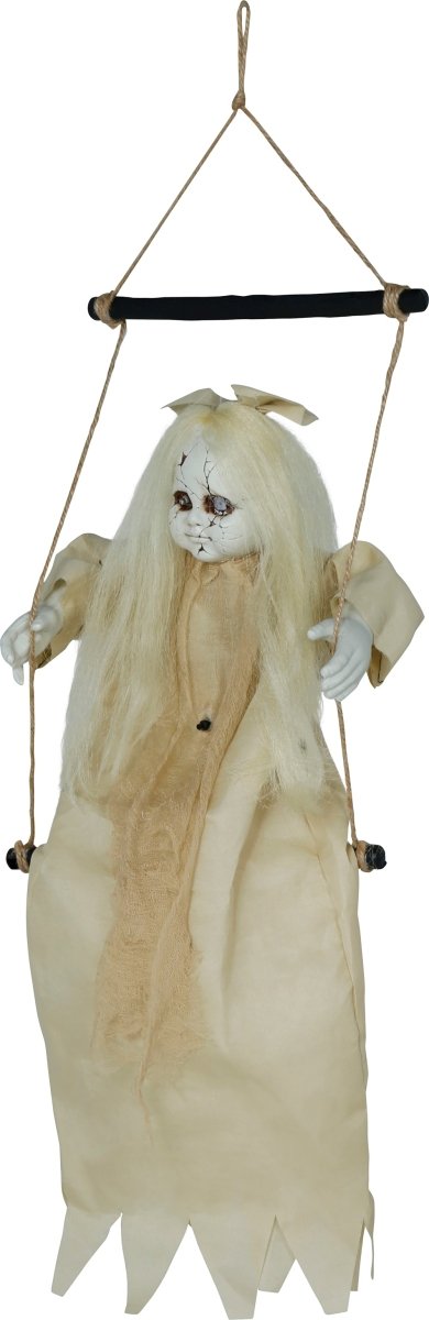 Skab en uhyggelig atmosfære under halloween med denne 75 cm høje halloweendukke med lys og lyd. Dukken hænger på en gynge og er en skræmmende og iøjnefaldende dekoration i dit hjem eller din have takket være dens livagtige effekter.