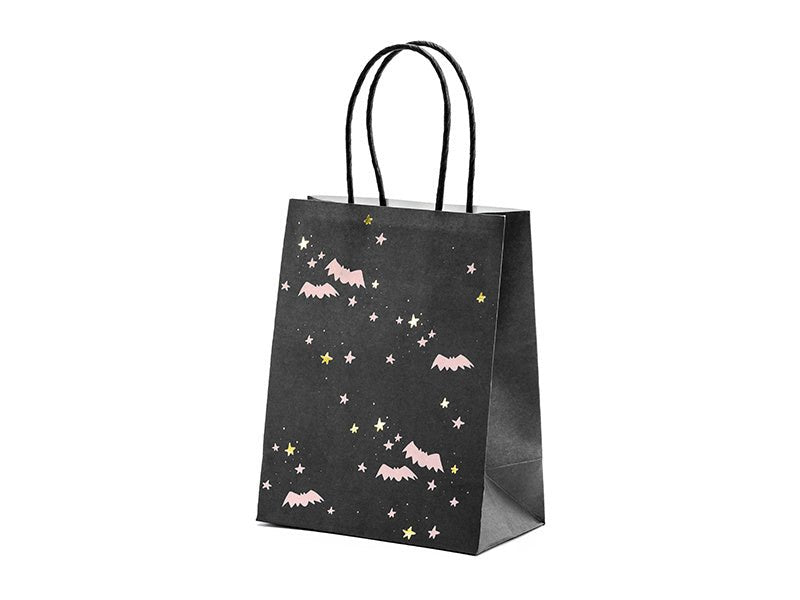 Gavepose i sort farve med pink og guldprint, størrelse uden håndtag ca. 14 x 18 x 8 cm.
