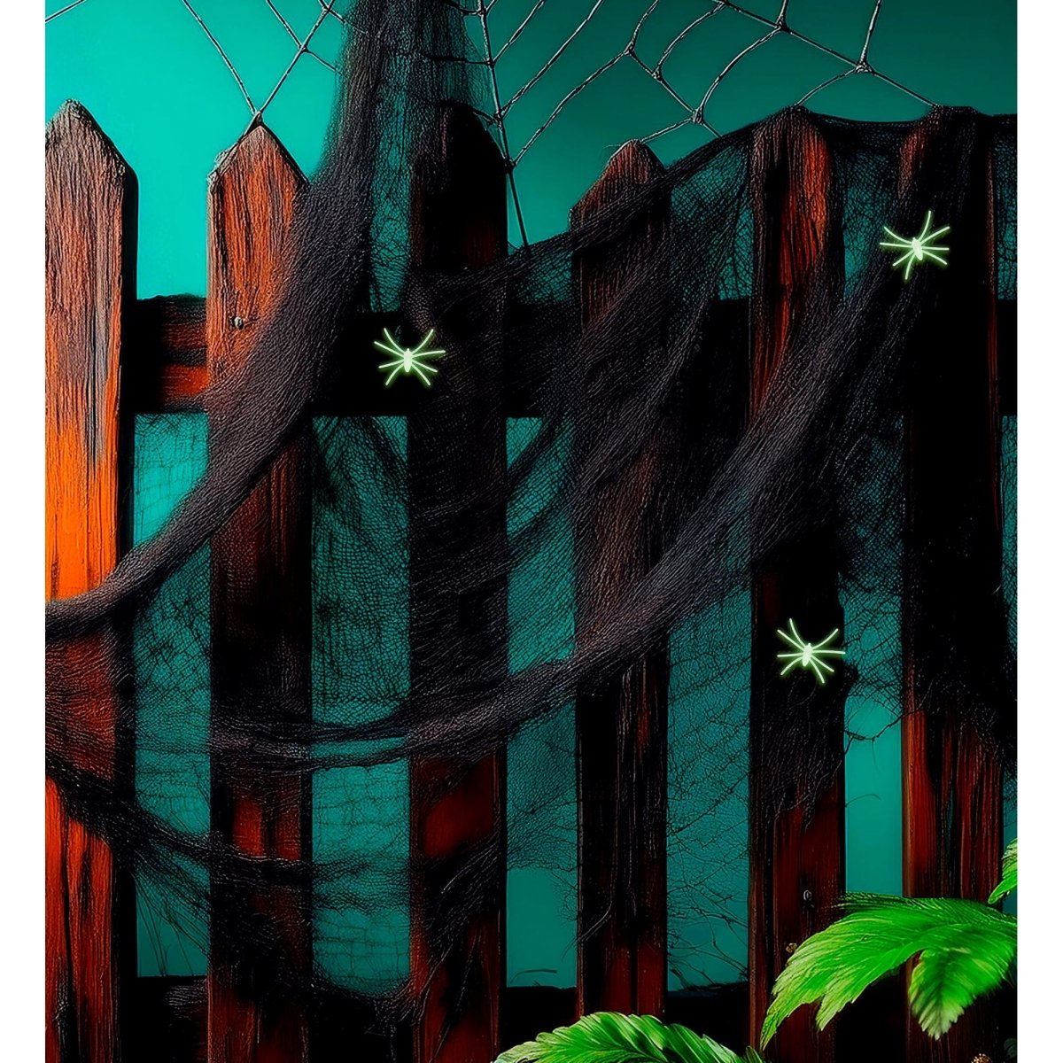 Halloween-spindelvæv med edderkopper 4 stk