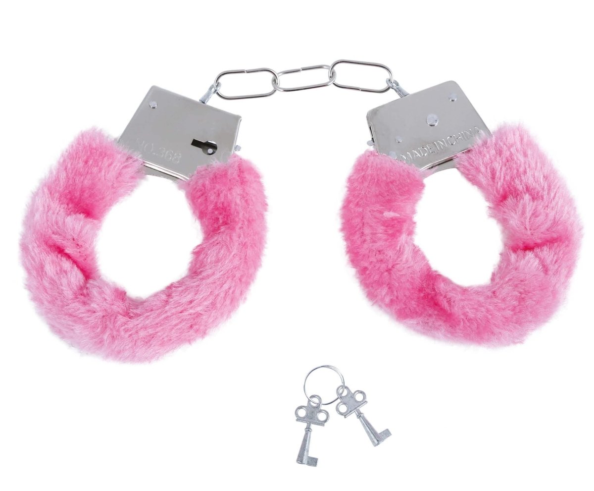 Indhold: 1 håndjernssæt i pink fløjl med 2 nøgler
