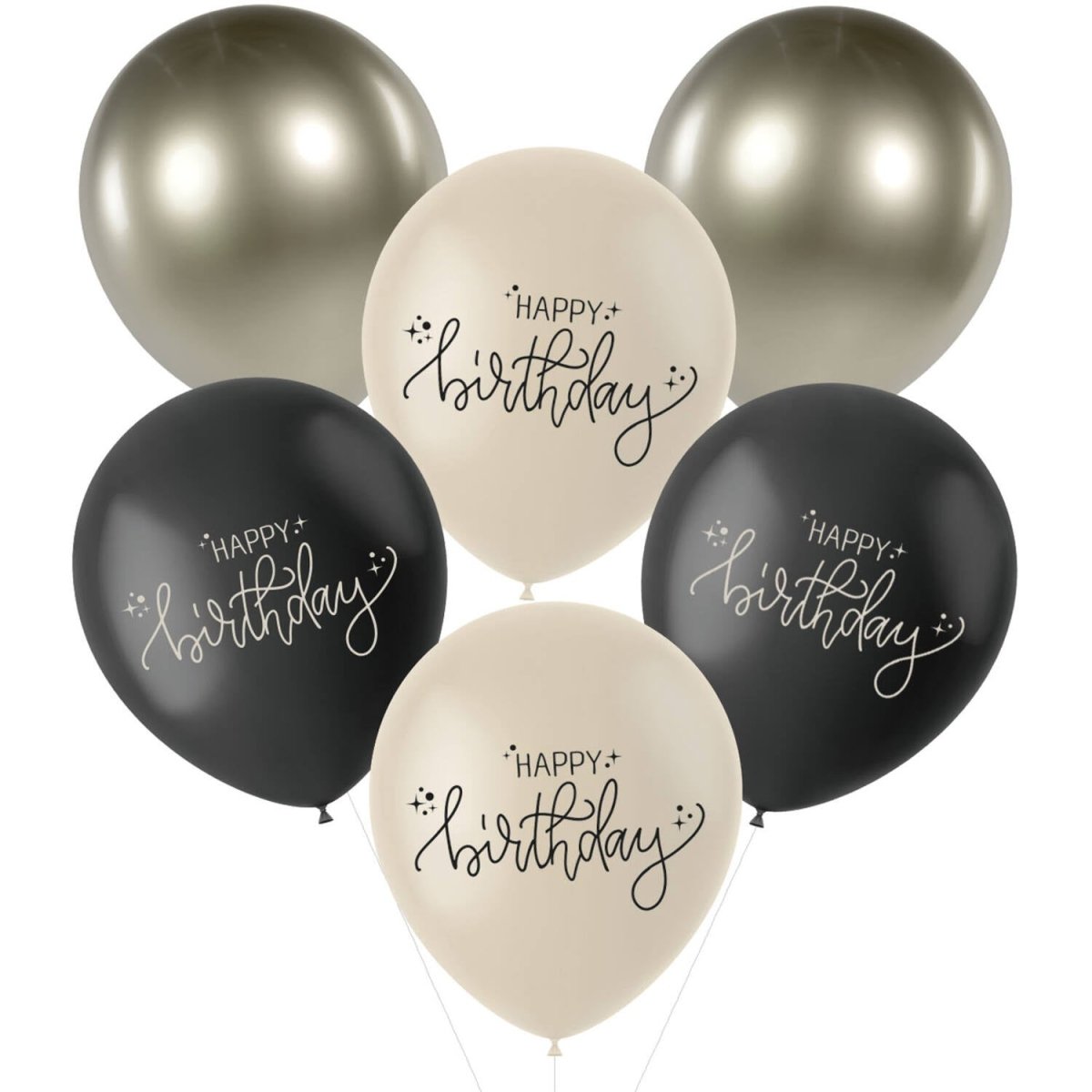 Happy Birthday Balloons Black 33cm 6stk