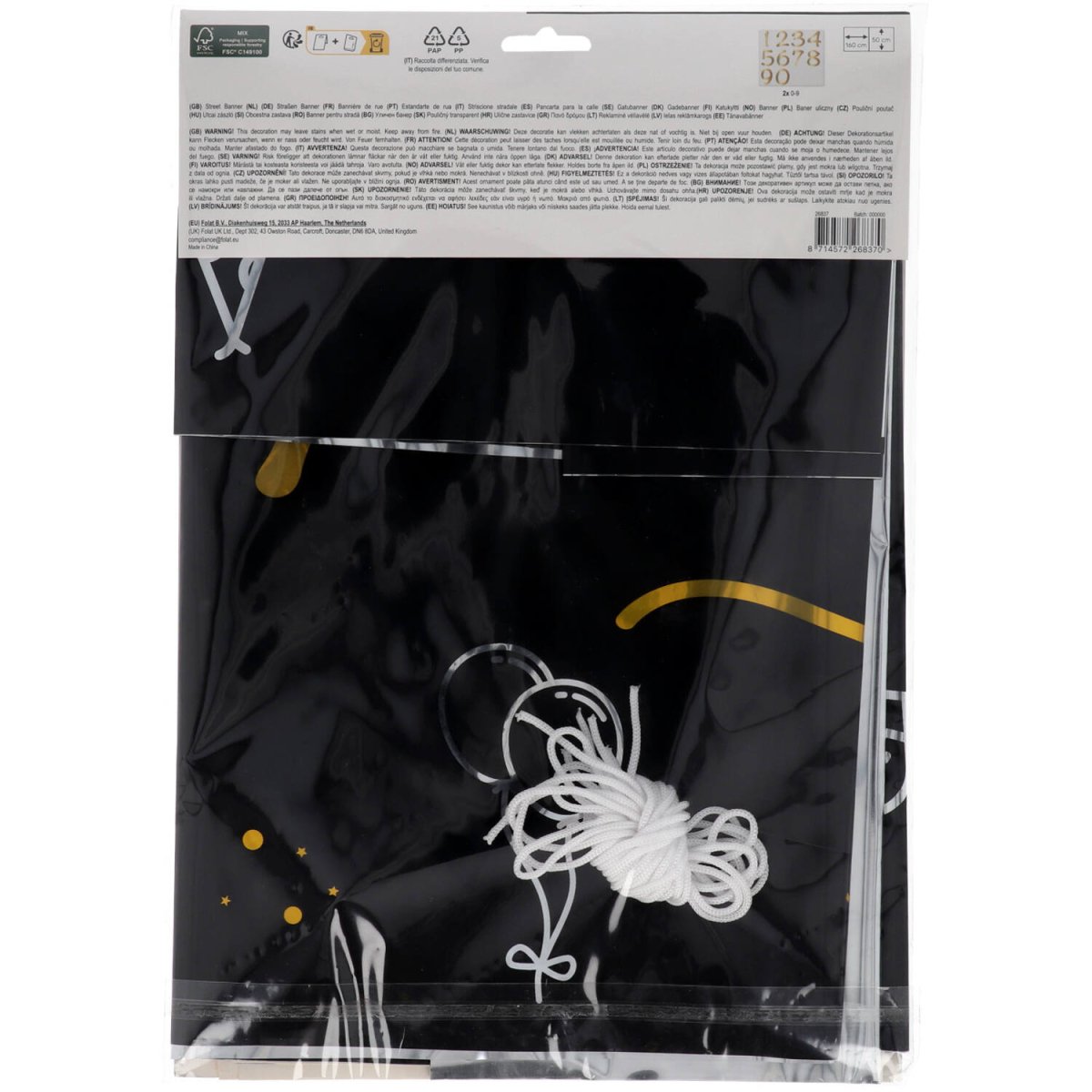 Der er en fødselsdag! Gadebanner - Shining Glam - 160 x 50 cm. Indhold: 1 gadebanner. Kan f.eks. bruges til følgende fester/anledninger: Fødselsdag. Med dette gadebanner ved hele nabolaget, at der er nogen, der har fødselsdag. Banneret har ordene "HAPPY" og "BIRTHDAY" trykt i skinnende guld omgivet af festsymboler i skinnende sølv. Alderen kan sættes fast mellem ordene med de medfølgende talklistermærker i skinnende guld: 2x tallene 0 til 9 på 14,5 cm i højden. Der er en metalnitte i de fire hjørner. der medfølger 4 hvide polyestersnore på hver 1 meter. Denne hængende dekoration hører til Shining Glam-kollektionen fra