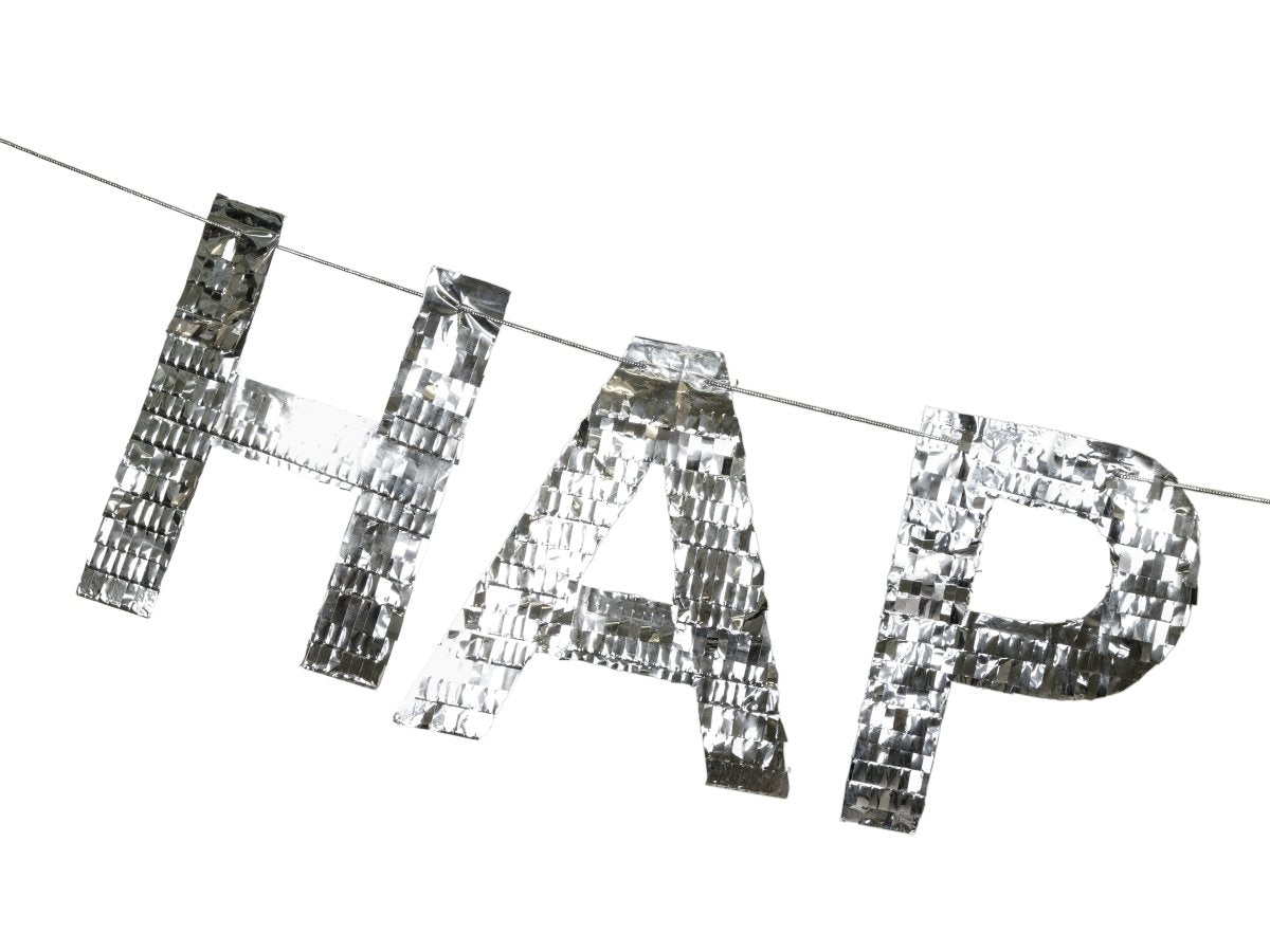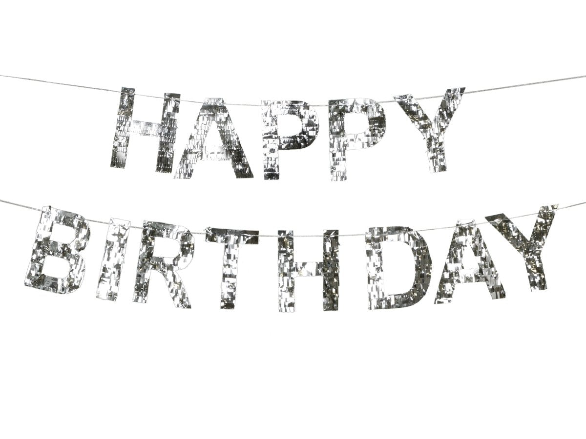 Happy Birthday Bogstavguirlande Sølv 2,2 m