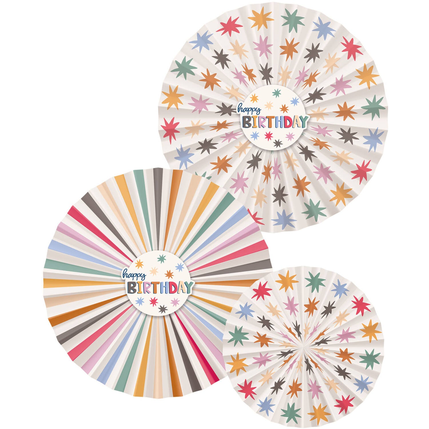 Happy Birthday papirvifter i farver 3 stk