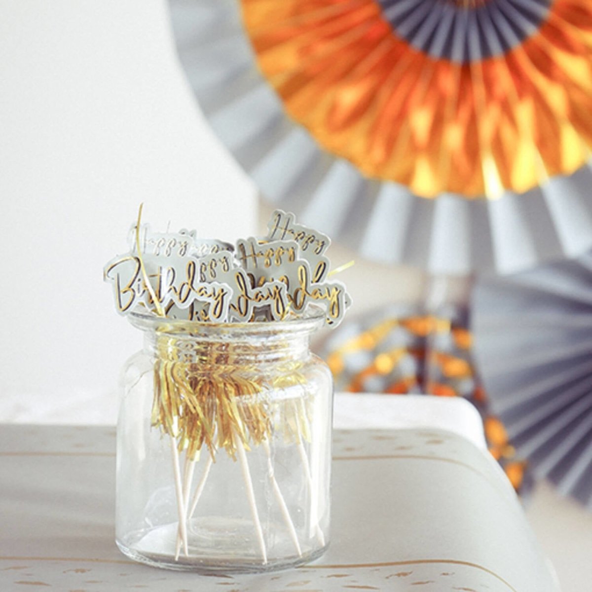 Happy Birthday Parasol Prickers Golden Dawn 12cm 12stk