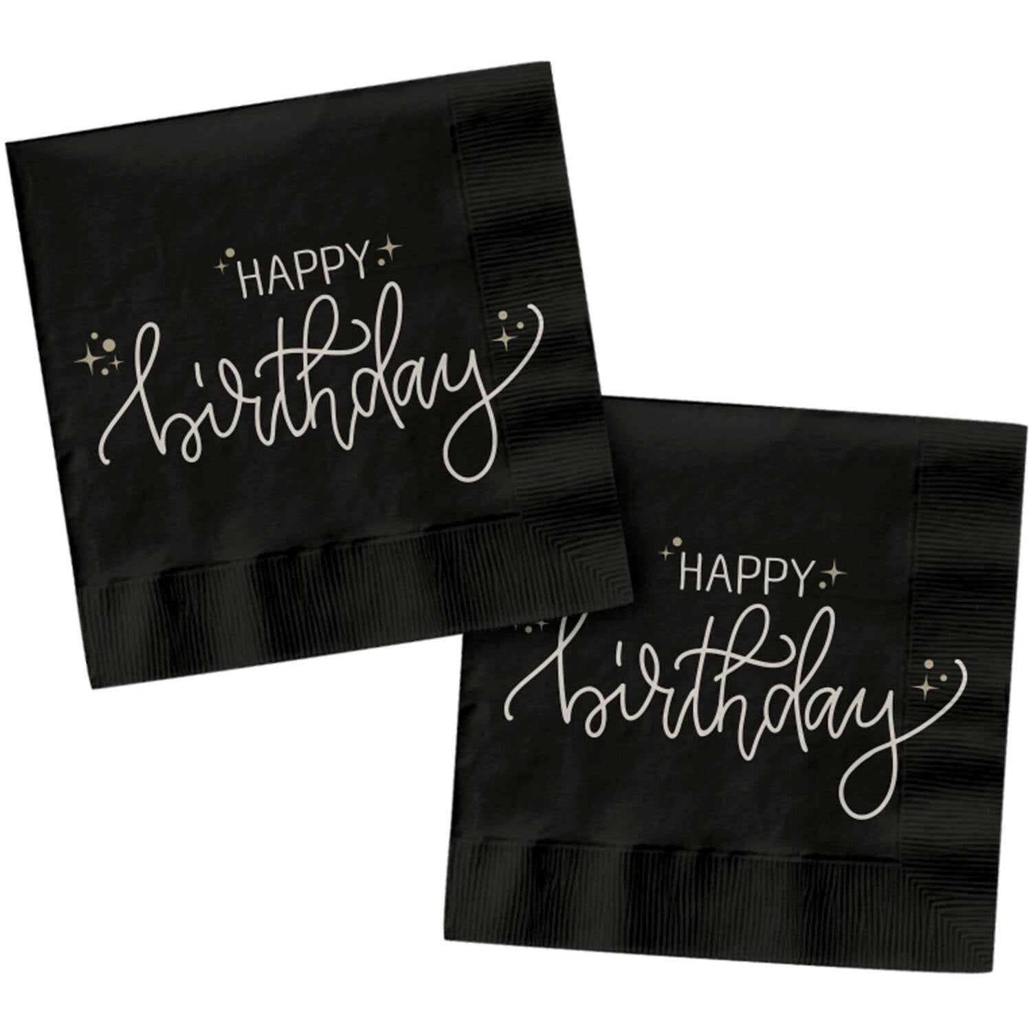 Happy Birthday Servietter Sort Hvid 33cm 20stk