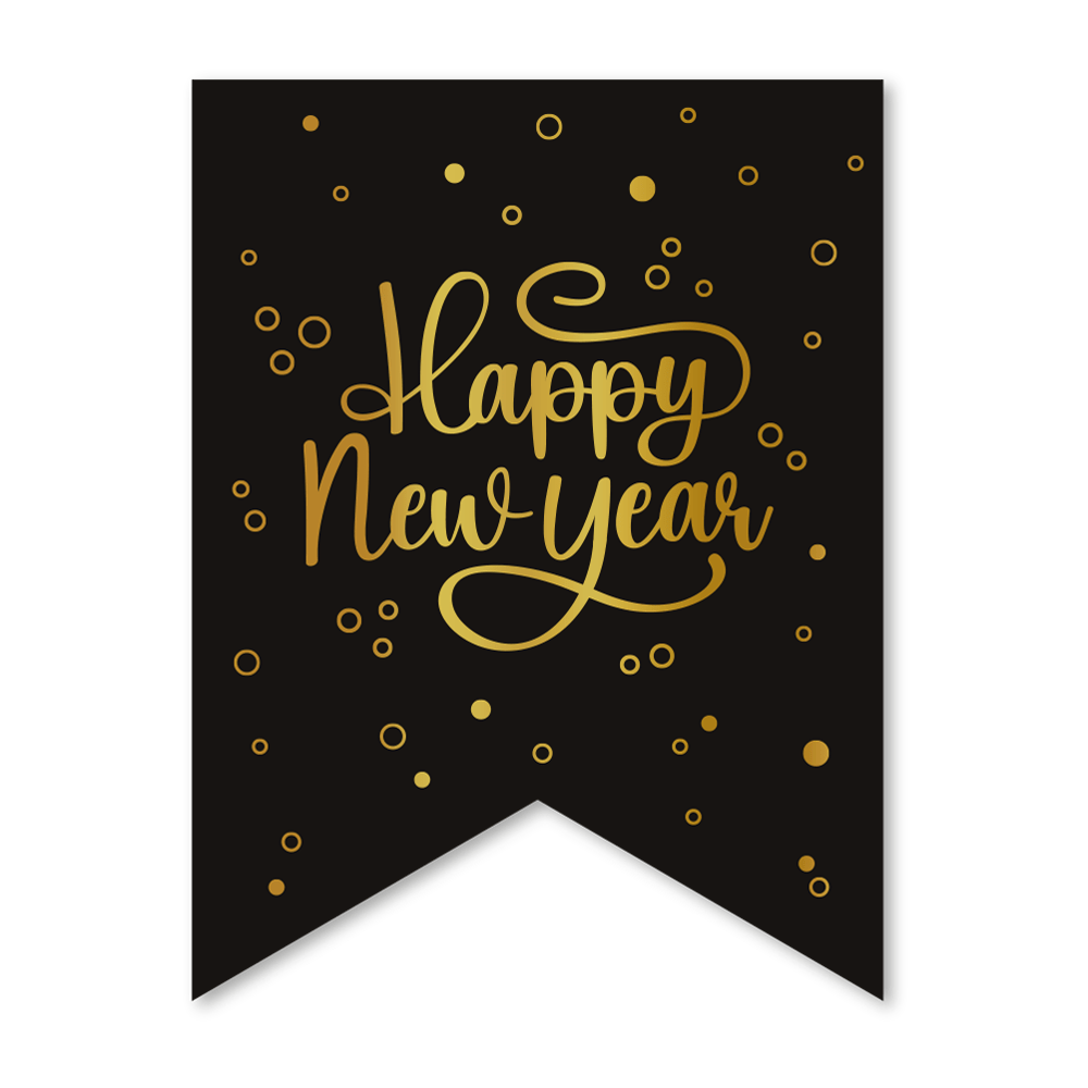 Happy New Year Garland Black Gold Banner 6m
