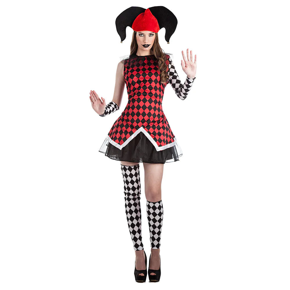 Gør karnevalssæsonen til en uforglemmelig oplevelse med dette gøglerkostume til teenagepiger. Du stråler i denne iøjnefaldende karnevalskjole og er klar til at efterlade et hylende morsomt indtryk. Kostumet består af en kjole med underkjole, ærmer, benstykker og en gøglerhat og fås i forskellige størrelser. Fuldend looket med en udtryksfuld makeup. Du kan også nemt forvandle det til et horror-halloweenkostume ved at kombinere det med falsk blod, en dræberklovneparyk og en kniv. Dette Harlekin-kostume findes også i en herreversion, så det er perfekt til at tage til fest sammen i samme stil.