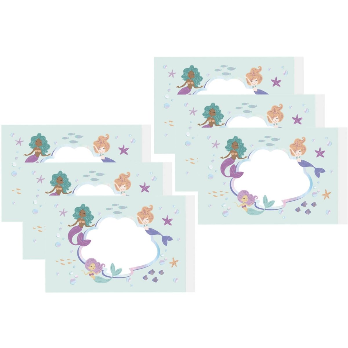 For endnu mere undervandsmagi! Bubble Blower Stickers - Mermaid Magic - 6 stk. Indhold: 6 bobleblæser-klistermærker. Kan f.eks. bruges til følgende fester/anledninger: Børnefødselsdag, fødselsdag, temafest. Disse bobleklistermærker vil gøre alle børn til stolte ejere af deres egen bobleblæser. Klistermærkerne passer på en standardbobleflaske og måler: 11 x 6,8 cm. De er trykt på den ene side. Denne vare er lavet af papir.