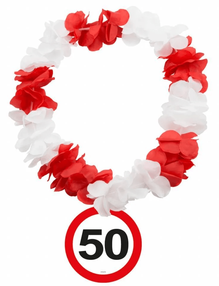 Pakkens indhold: Hawaii krans 50 års trafikskilt