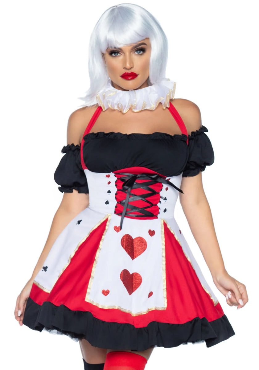 Bland kortene og træd ind i Eventyrland med det 2-delte Pretty Playing Card-kostume fra Leg Avenue! Dette sexede eventyrland-outfit omfatter en kjole i spillekortdesign med korset i taljen og en legesyg flæsekrave. Kombiner med tilbehør for at skabe dit eget unikke look! 🃏✨