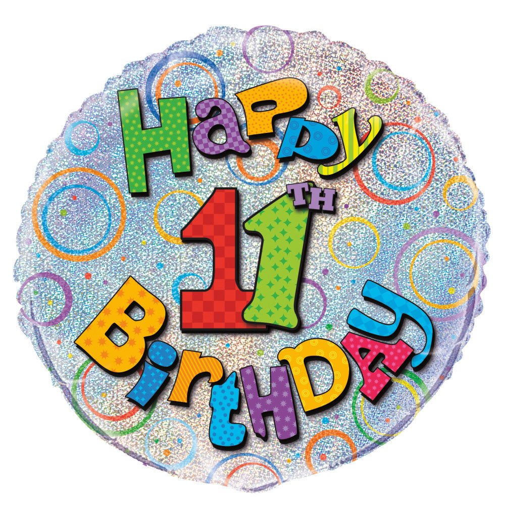 Heliumballon 11 år Glitter 45 cm tom