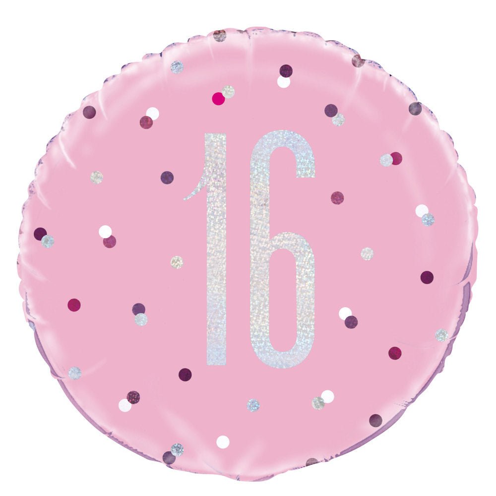 Heliumballon 16 år lyserød 45 cm tom