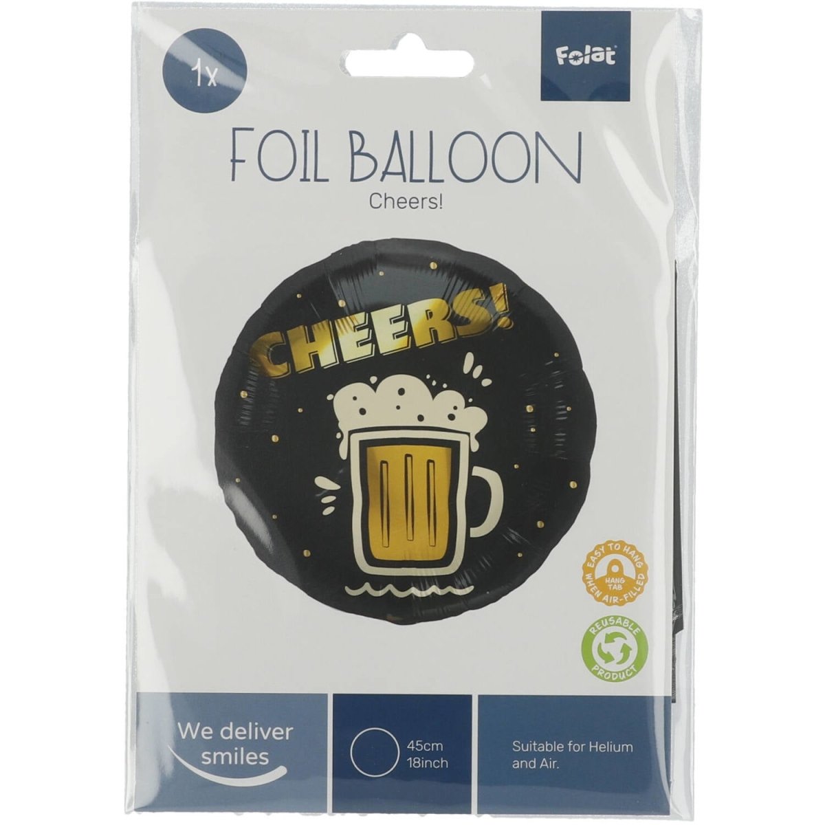 Folieballon Cheers Beer - 45 cm. Indhold: 1 folieballon. Farve: Grå. Kan f.eks. bruges til følgende fester/anledninger: Fødselsdag. Denne folieballon måler 18 tommer/45 cm. Artiklen er lavet af folie.