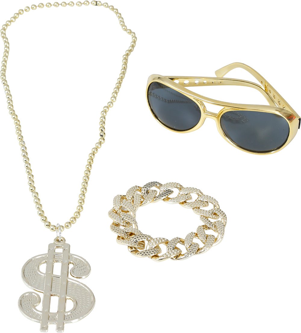 Hip Hop udklædningssæt Gold Hip Hop 3 dele
