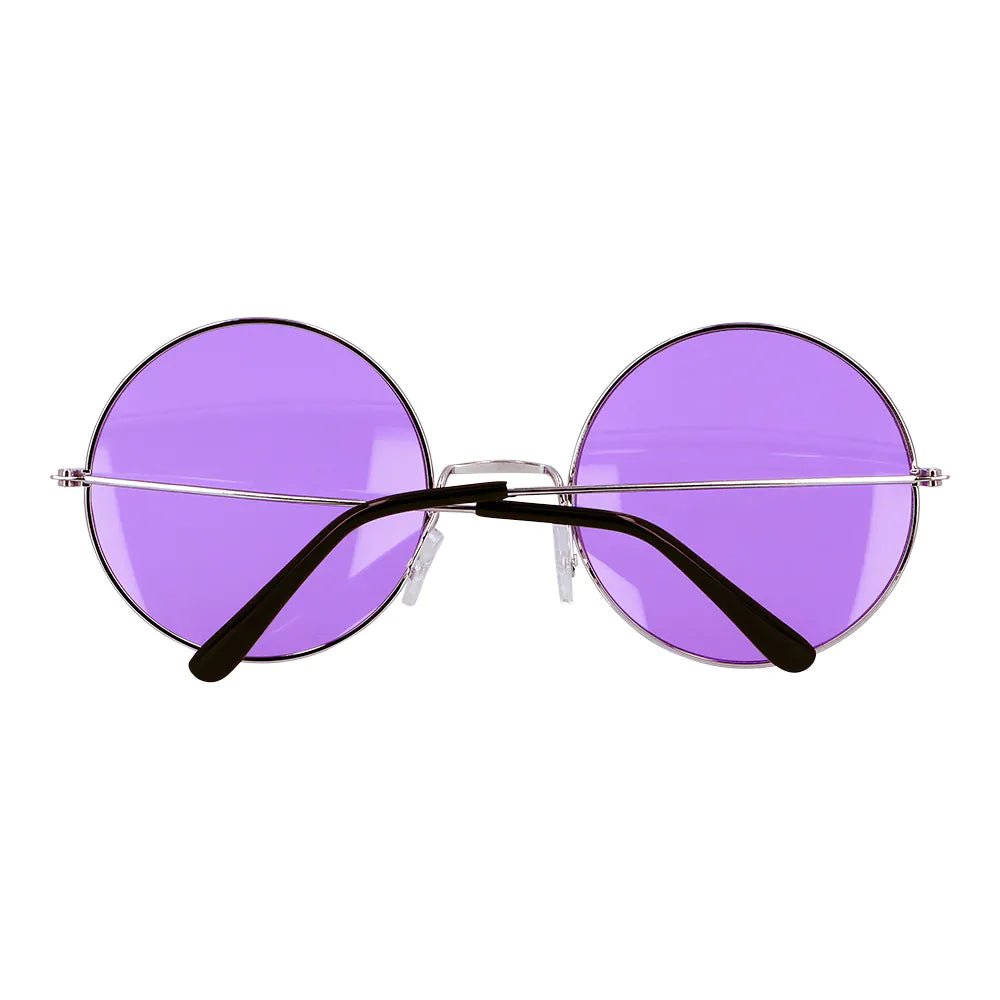 De muntre overdimensionerede hippiebriller med store runde lilla glas er perfekte til festivalgængere og frie festaber. De farverige partybriller vil tilføje en dosis flower power til ethvert festivaloutfit eller 60'er- og 70'er-kostume til karneval eller udklædningsfester.