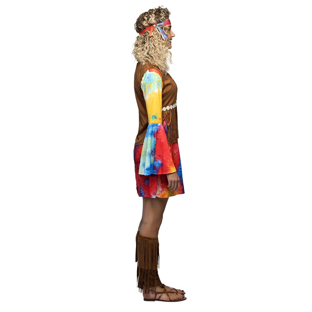 Tilføj lidt flower power til karnevalet eller udklædningsfesten, og fortryl alle med dette muntre 70'er-hippiekostume. Dette retrokostume indeholder en kjole, vest, pandebånd, halskæde og benbeskyttere.