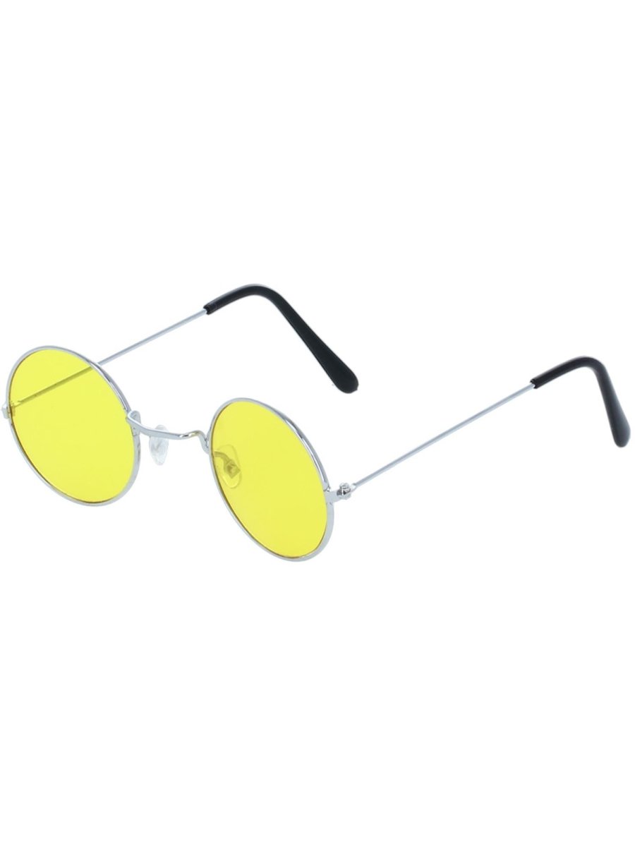 Disse gule hippiebriller er et muntert og iøjnefaldende tilbehør til karneval, udklædningsfester og 60'er/70'er-fester. Perfekt til at fuldende et ægte flowerpower-look.