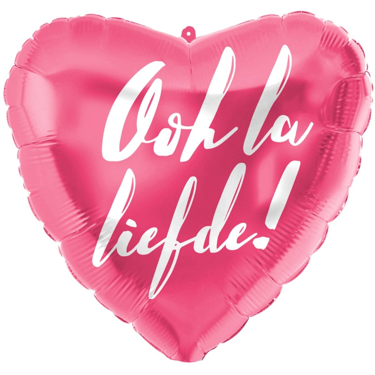 Folieballon Hjerteformet 'Ooh la Love!' - 45 cm. Indhold: 1 folieballon. Farve: Pink. Kan f.eks. bruges ved følgende festlige lejligheder: Valentinsdag. Denne folieballon måler 18 tommer/45 cm. Varen er fremstillet af folie.