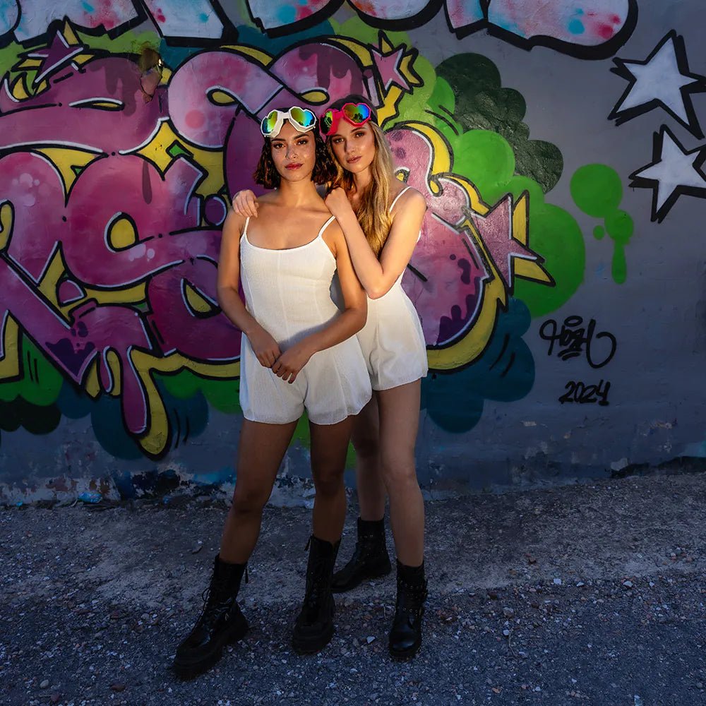 Uanset om man giver den hele armen på en festival, fortsætter til langt ud på natten under afterski eller klæder sig ud i en sjov retro-skidragt under karnevalet, er disse hvide hjerteformede skibriller et must-have! De unikke skibriller er et legesygt tilbehør, der tager et festival- eller festoutfit til det næste niveau.