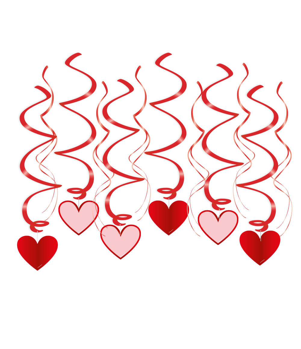 Hjerter hængende dekoration rød 70 cm 6 stk