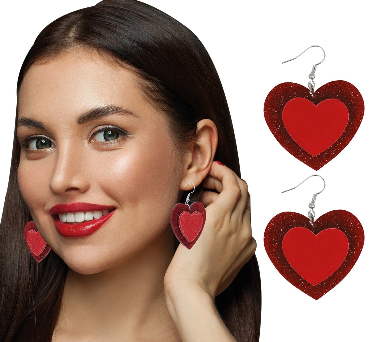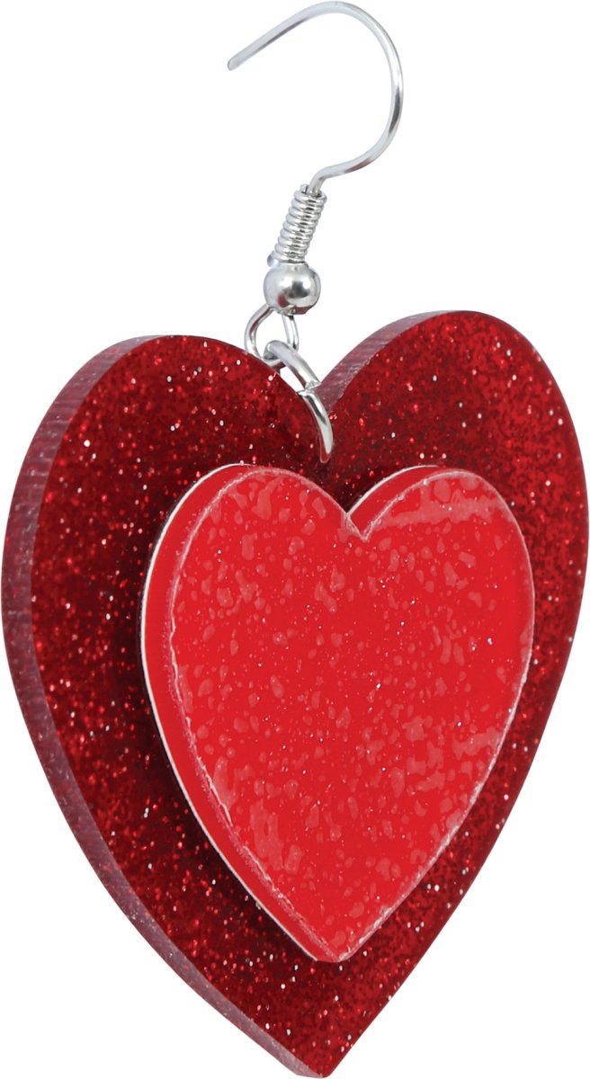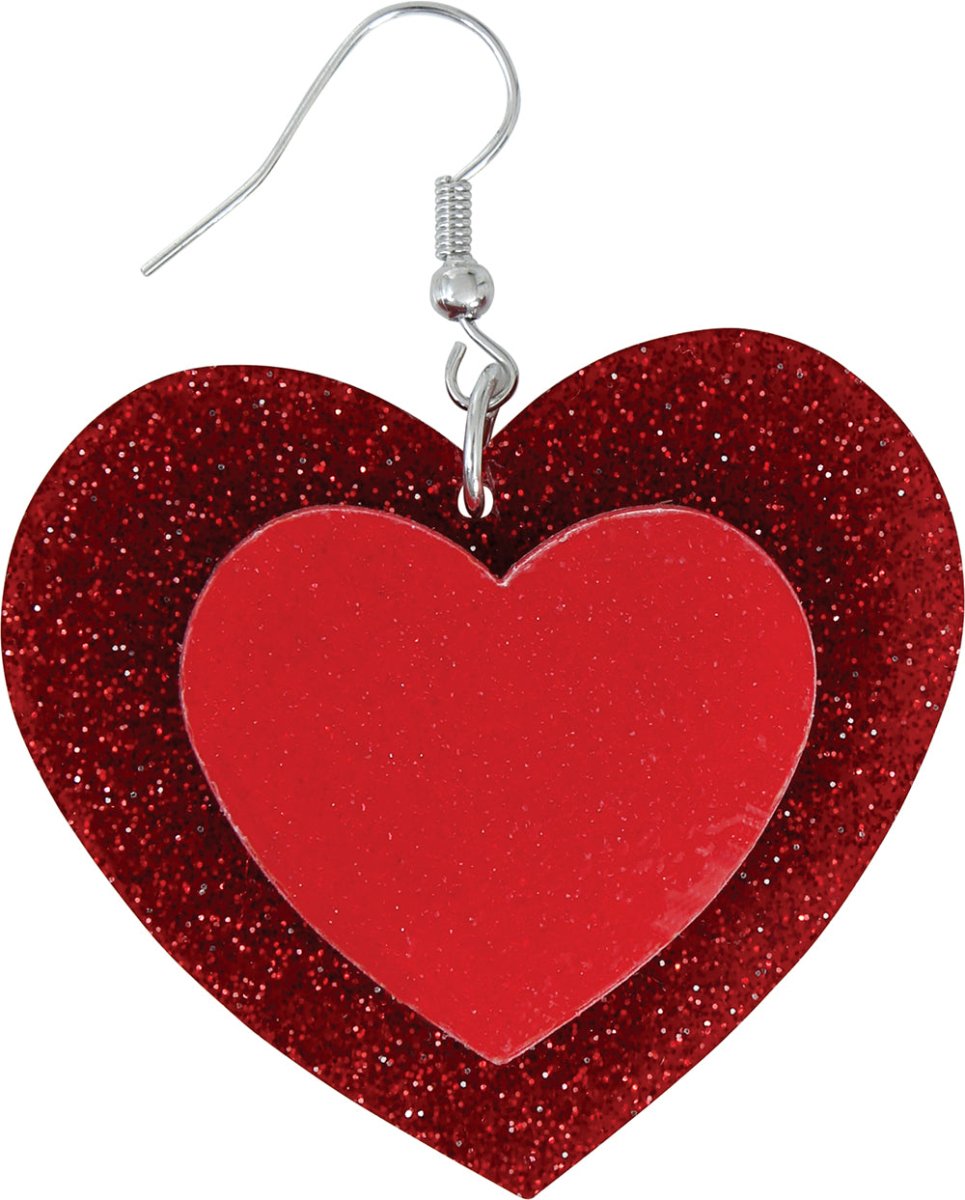 Hjerter øreringe rød glitter