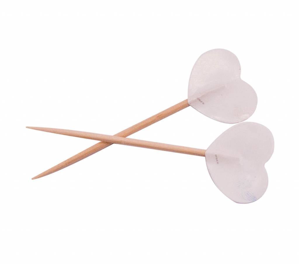Prikkere hvide hjerter - 50 stk. Indhold: 50 prikker. Kan f.eks. bruges til følgende fester/anledninger: Valentinsdag, bryllup og mors dag. Hvert spyd måler 6,5 cm. Disse spyd er lavet af bambus.