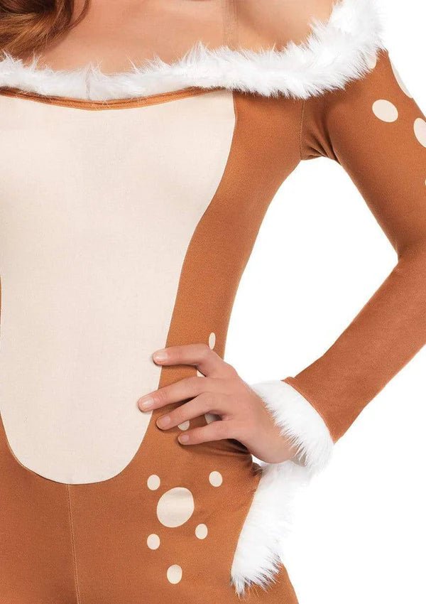 ✅ Off-shoulder catsuit med pelskant og sød fawn-hale for et charmerende look