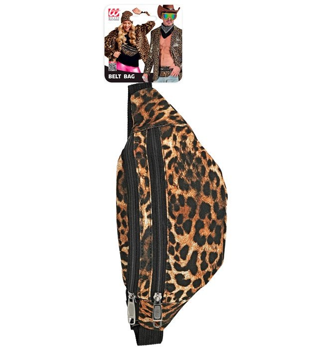 Denne leopardtrykte hoftepose i brun og sort er et trendy og praktisk tilbehør til fester og udklædningsfester. Perfekt til karneval, temafester, 80'er/90'er-fester eller en forkert fest.