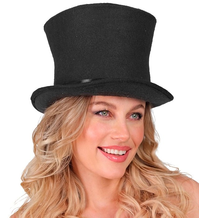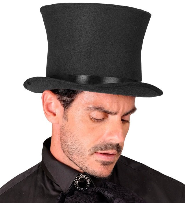 Fuldend dit outfit med denne klassiske sorte høje hat. Perfekt til temafester, karneval, shows, udklædningsfester eller elegante kostumer.