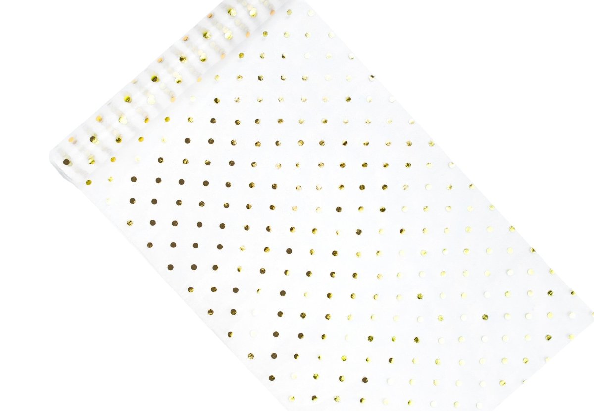 Hvidt organza-stof med guldprikker 36 cm 9 m
