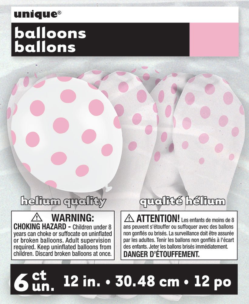 Hvide balloner med lyserøde prikker, 30 cm, 6 stk