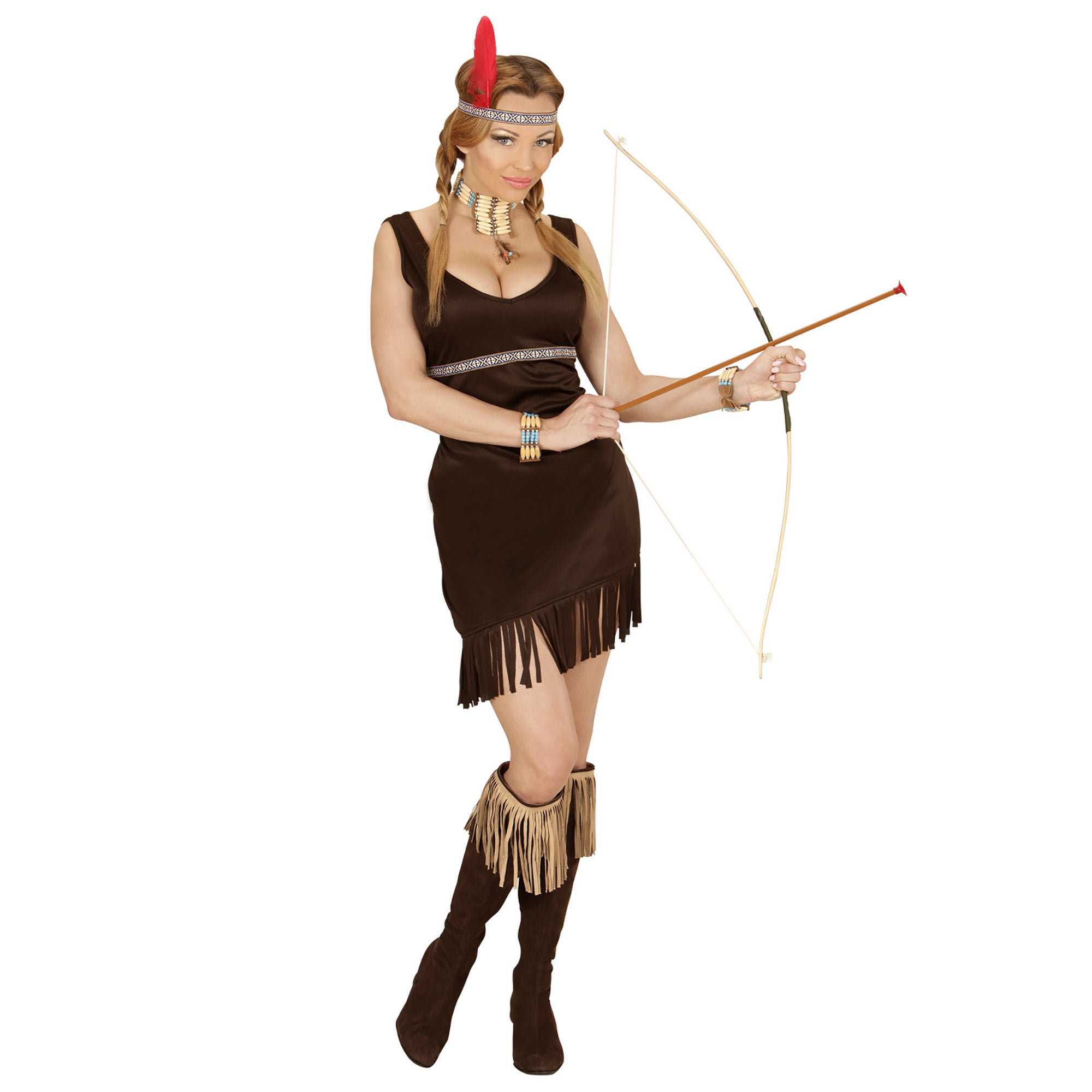 Beskrivelse: indisk kjole, pandebånd med fjer