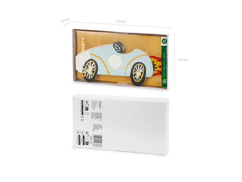 Invitationer i form af en bil, farvemix, størrelse ca. 18,8 x 8,4 cm, sæt inkl. kuverter. (1 pkt/6 stk)