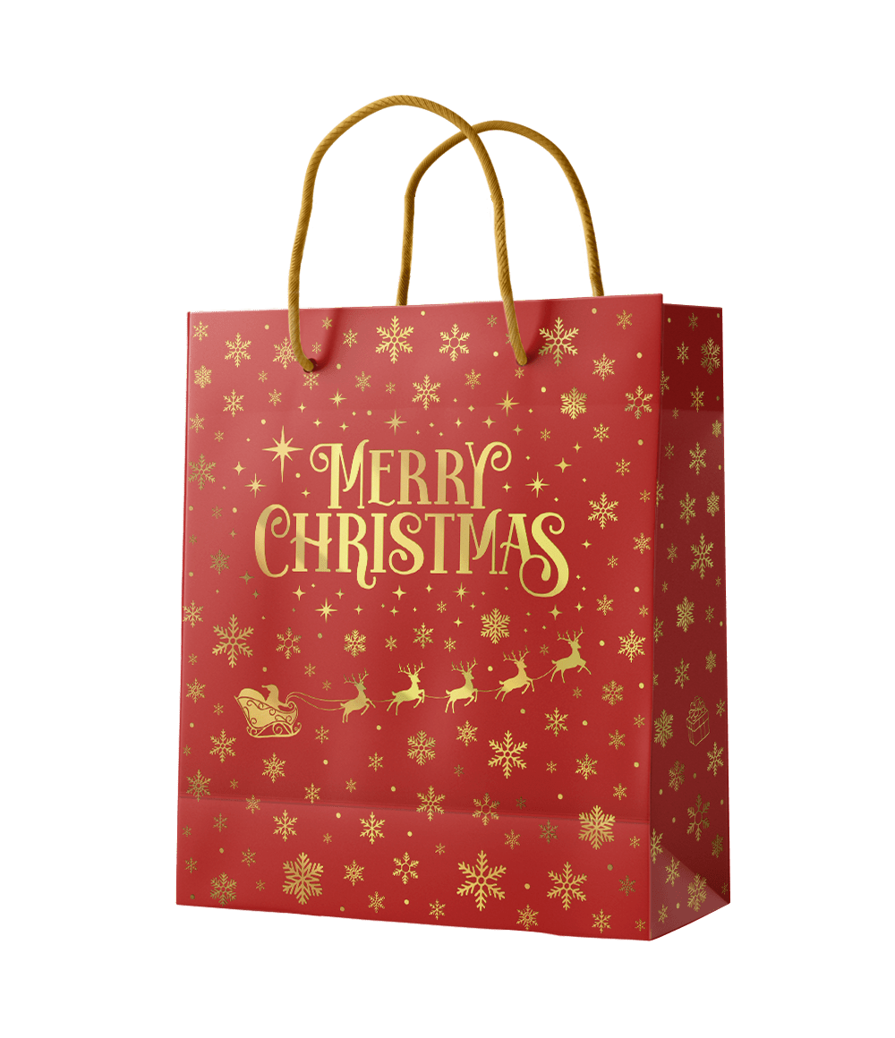 Julegavepose Rød Guld Glædelig jul M 21cm
