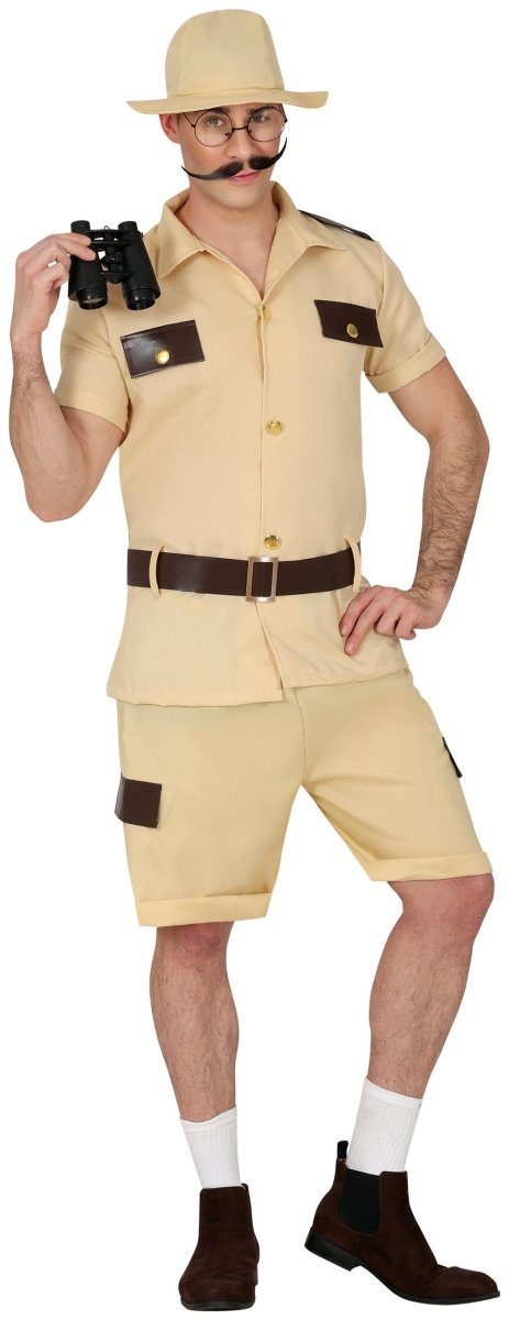 Dette junglekostume til mænd er et sejt og eventyrligt outfit til karneval, udklædningsfester og kostumefester. Ideelt til en opdagelsesrejsende eller et jungle-look.