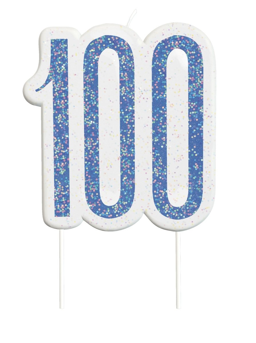 Stearinlys 100 år Glitter Blå 8,5 cm