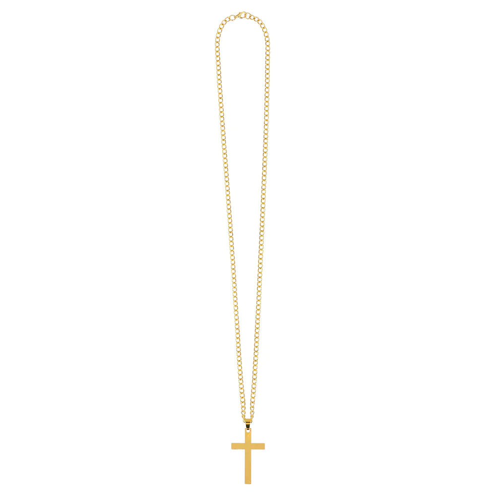 Giv dit kostumelook et strejf af åndelig ynde med denne guldfarvede halskæde med kors. Det perfekte tilbehør til dit præste- eller nonnekostume