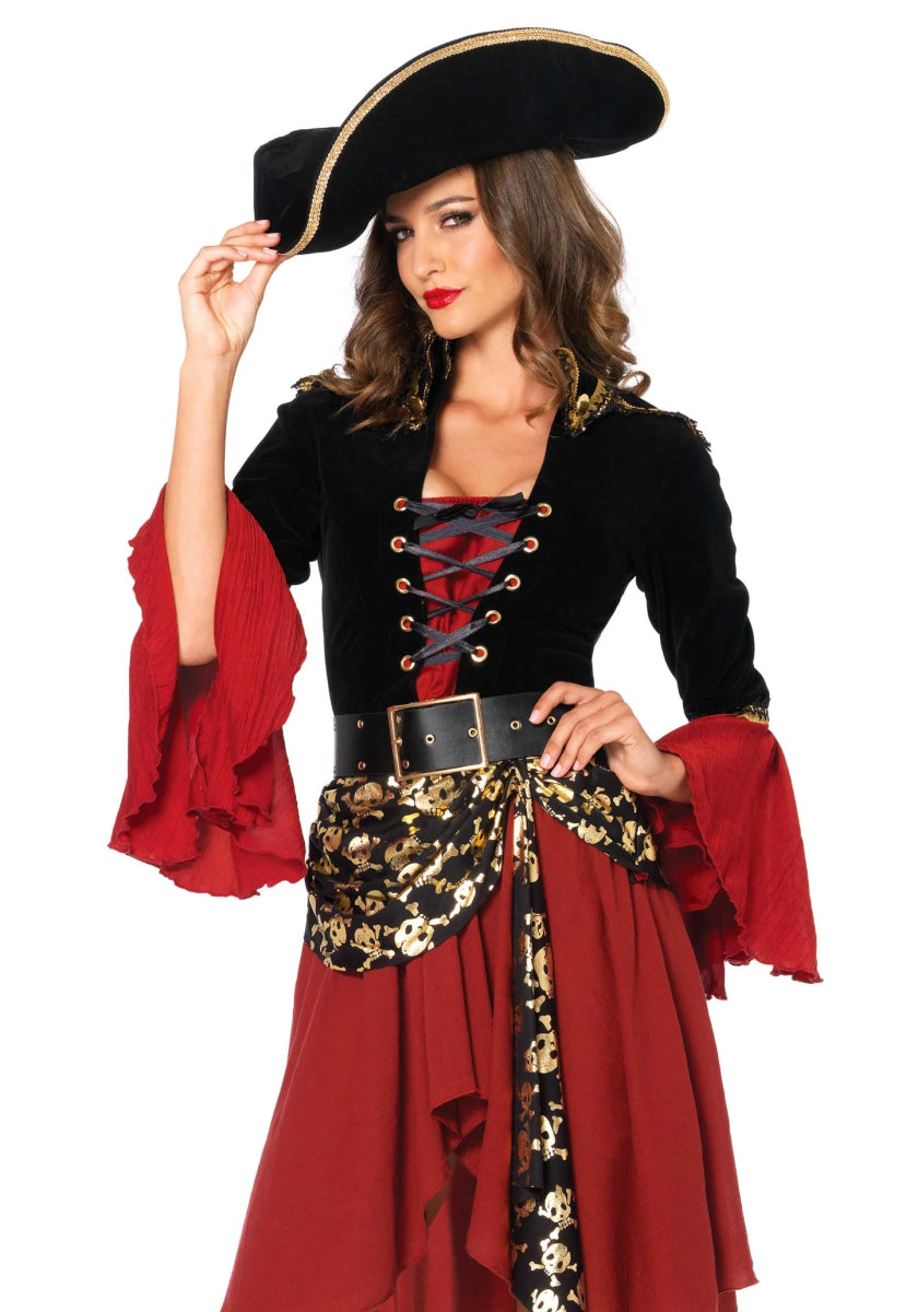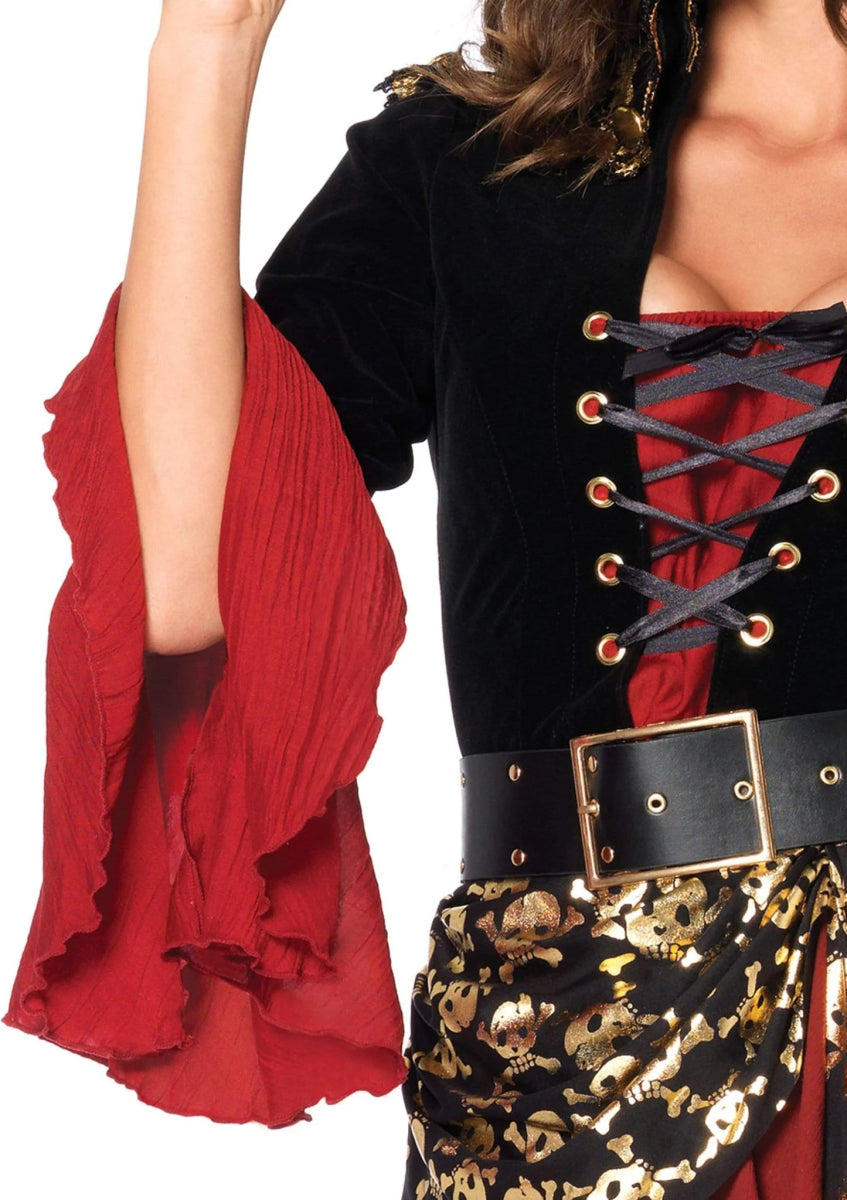 Sæt en tone af eventyr og autoritet med det 2-delte Cruel Seas Captain-kostume fra Leg Avenue! Sættet indeholder en tætsiddende kjole med ekstra lang ryg og en luksuriøs fløjlsjakke, som er fastgjort til kjolen. Det matchende bælte fuldender piratlooket og gør dig til den smukkeste og mest vovede kaptajn til enhver fest eller begivenhed! 🏴☠️✨