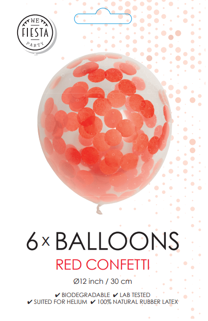 Konfettiballoner rød 30 cm 6 stk