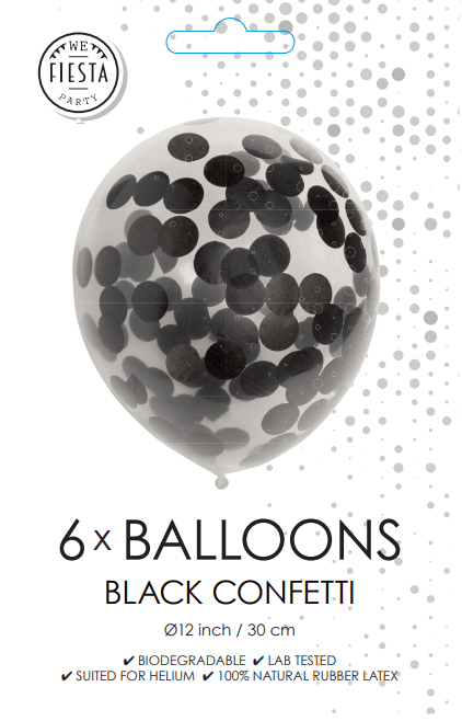 Emballageindhold:Konfettiballoner Sort 30cm 6stk