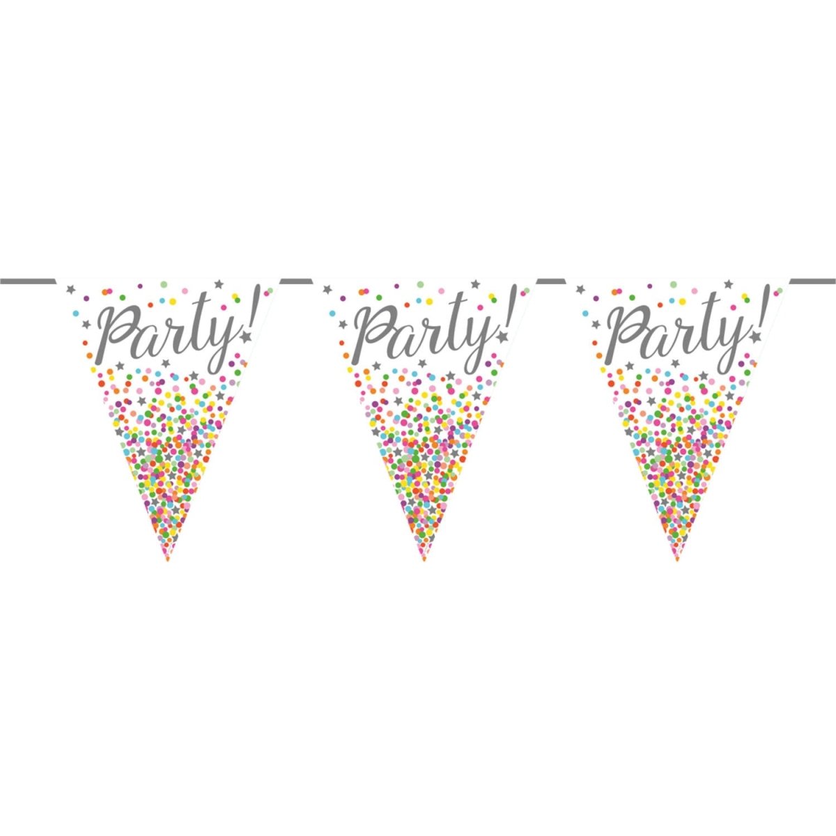 Flagline Confetti Party - 6 meter. Indhold: 1 flagline. Farve: Flerfarvet. Produkttema: Konfettifest. Kan f.eks. bruges til følgende fester/anledninger: fødselsdag, børnefest, teenagefest. Denne guirlande er 6 meter lang. Varen er fremstillet af plast.