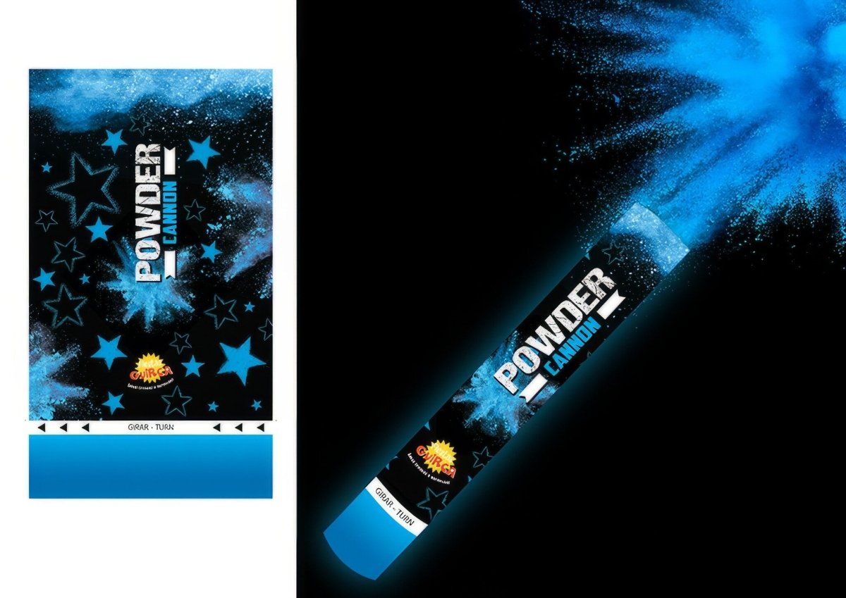 Indhold: Konfettikanon - Farve: Blå - Brandhæmmende: Ja - Materiale: Skum
