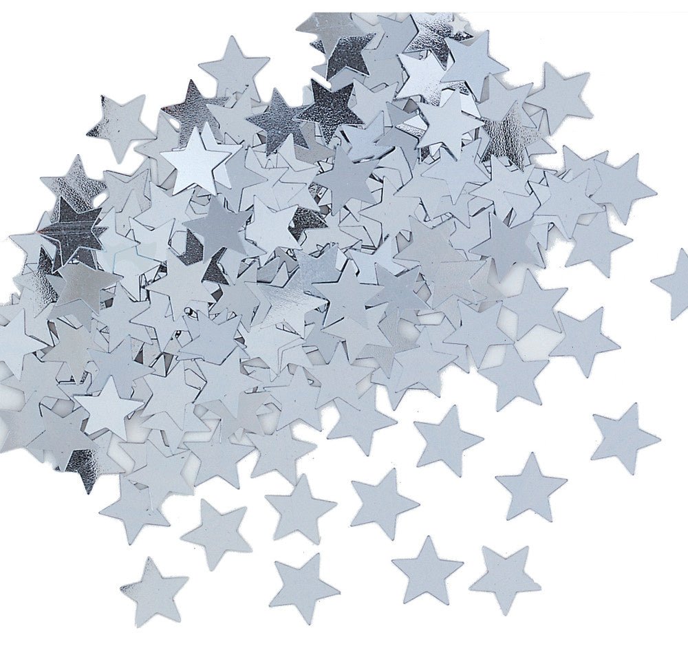 Emballageindhold:Stjerner Konfetti Sølv 1cm 14gr