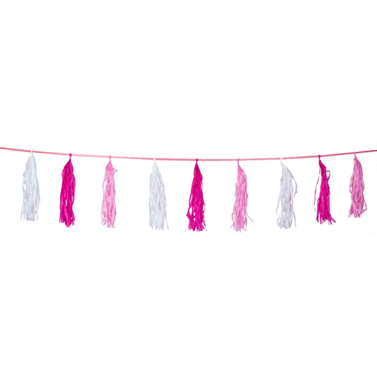 Pink Birth Garland Fringe - 3 meter. Indhold: 1 guirlande med frynser. Kan f.eks. bruges til følgende fester/anledninger: Pigefødsel, babyshower. Guirlanden er 3 meter lang. Varen er lavet af folie.