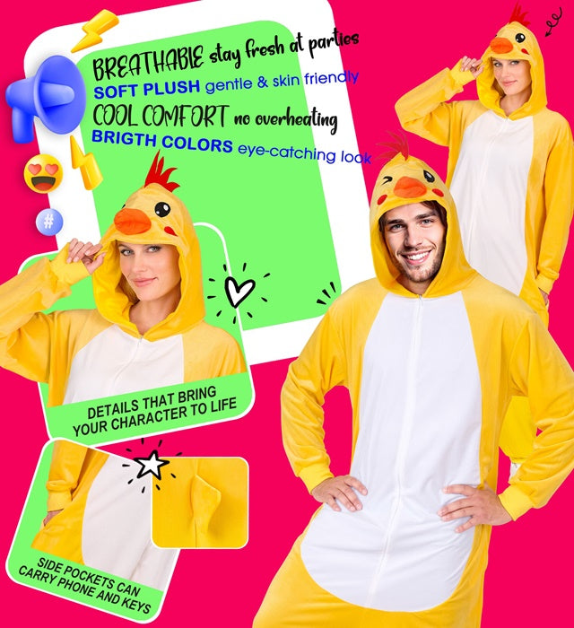 Gå efter et sjovt og muntert look med dette kyllingeplys-kostume. Det bløde materiale og det komplette design gør dette kostume perfekt til festlig udklædningssjov