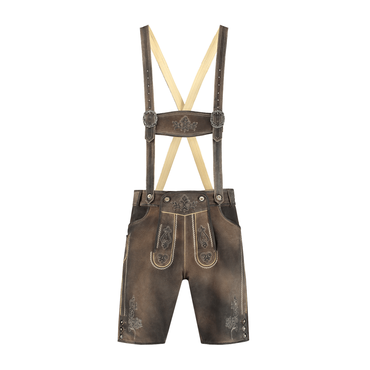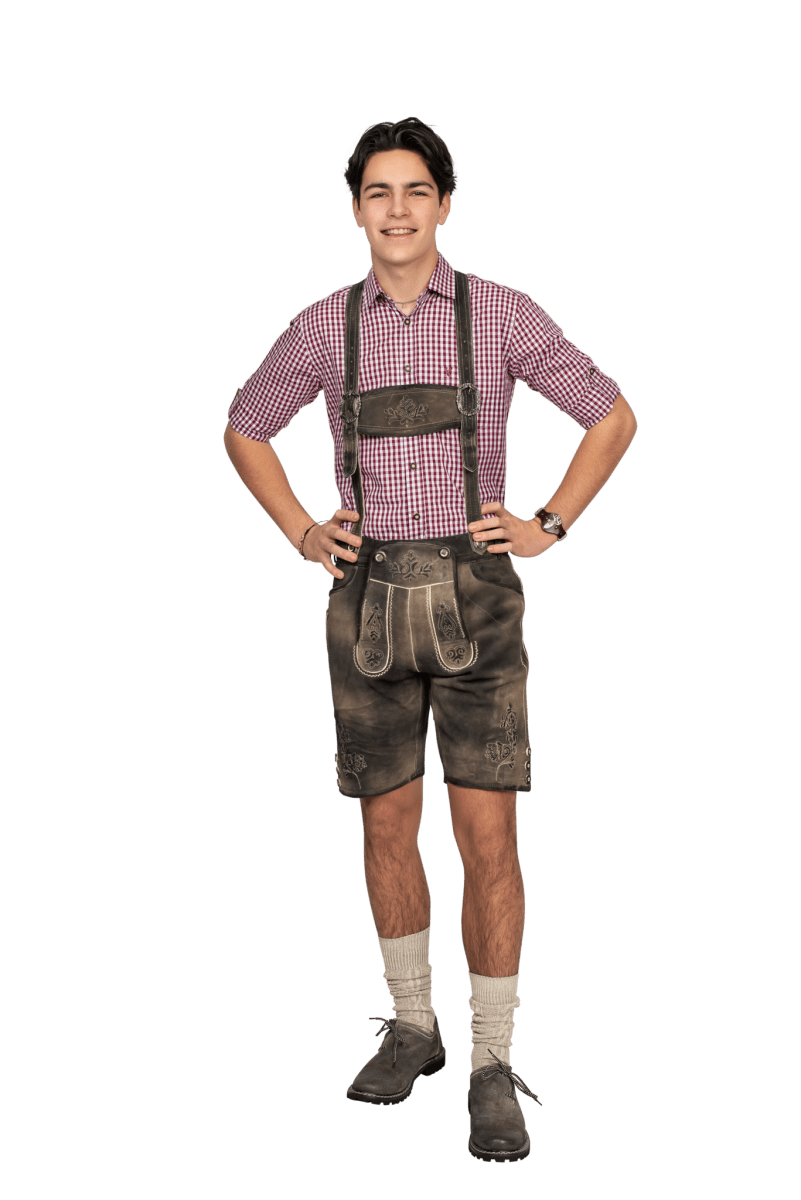 Beskrivelse Anmeldelser Om dette produkt Traditionelle læderbukser til mænd i farven sand grey antique.Læder i super kvalitet.Udførligt traditionelt broderi og flere for- og baglommer.Inkl. ægte benknapper i hjortehornslook.Fuldt foret.Super pasform! Trustpilot