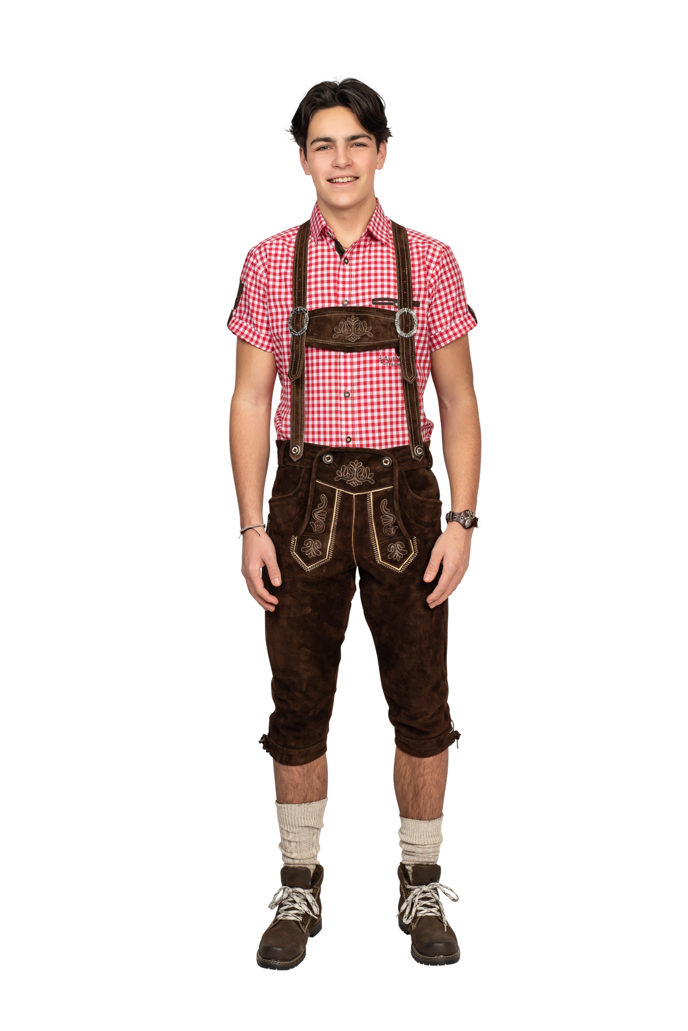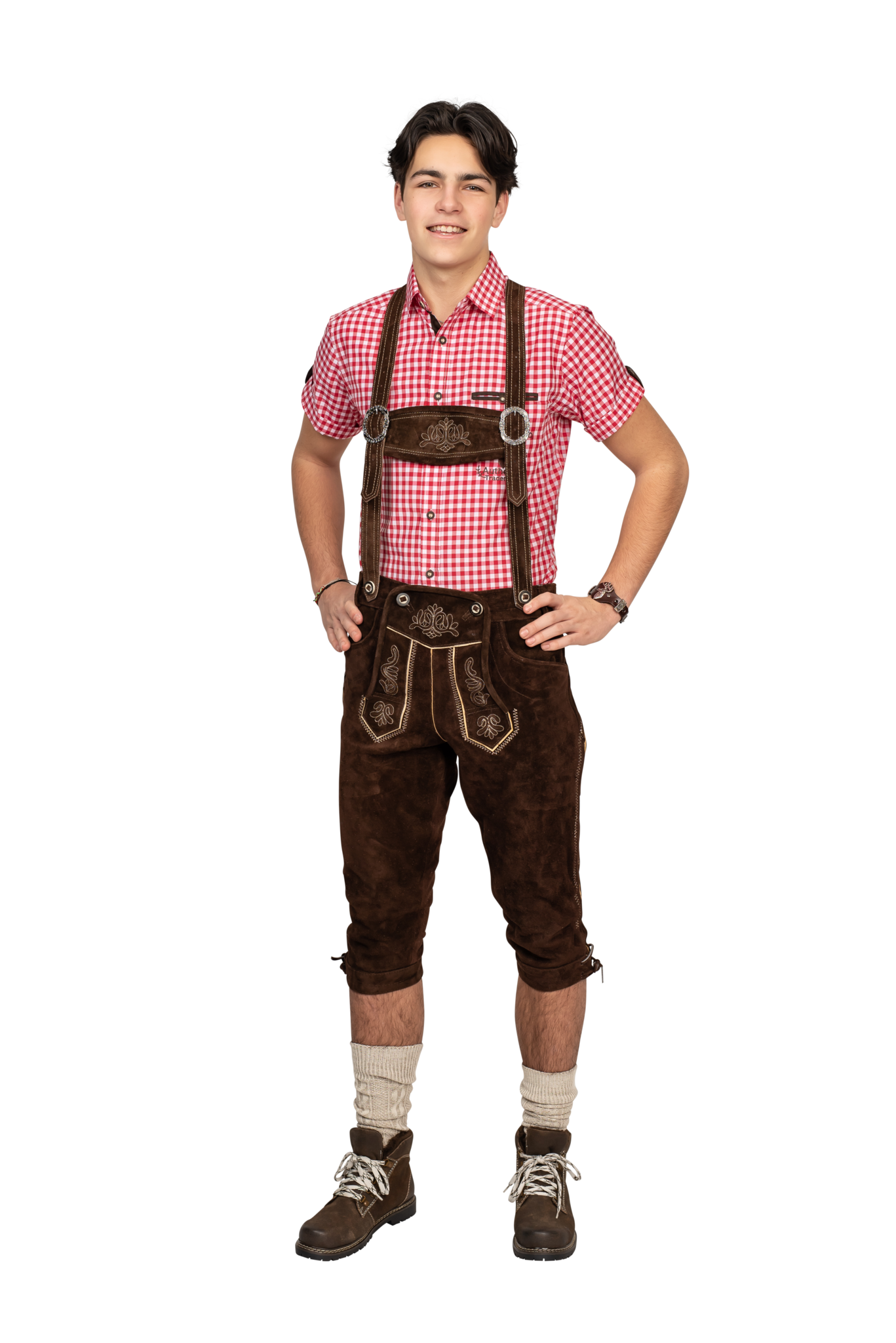 Strømpebukser i læder til mænd. Læder i super kvalitet. Omfattende traditionelt broderi, flere for- og baglommer og benknapper i ægte hjortehorn.... Fuldt foret. Super pasform!