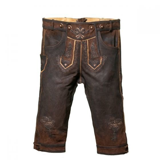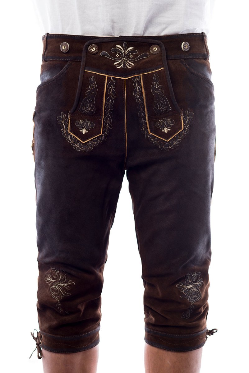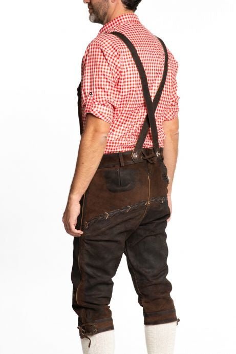 Lederhose læder lang mørkebrun syet og seler